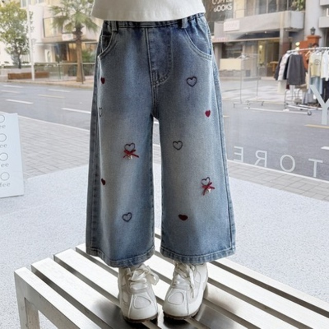 ❤︎お取り寄せ商品❤︎ [90-140] ハートとリボンデニムパンツ 25aw833