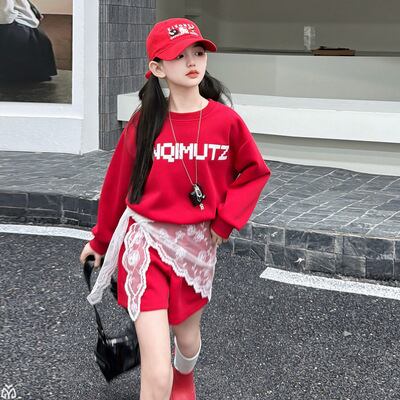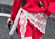 ❤︎お取り寄せ商品❤︎ [120-170] レース付きレッドセットアップ 25aw825